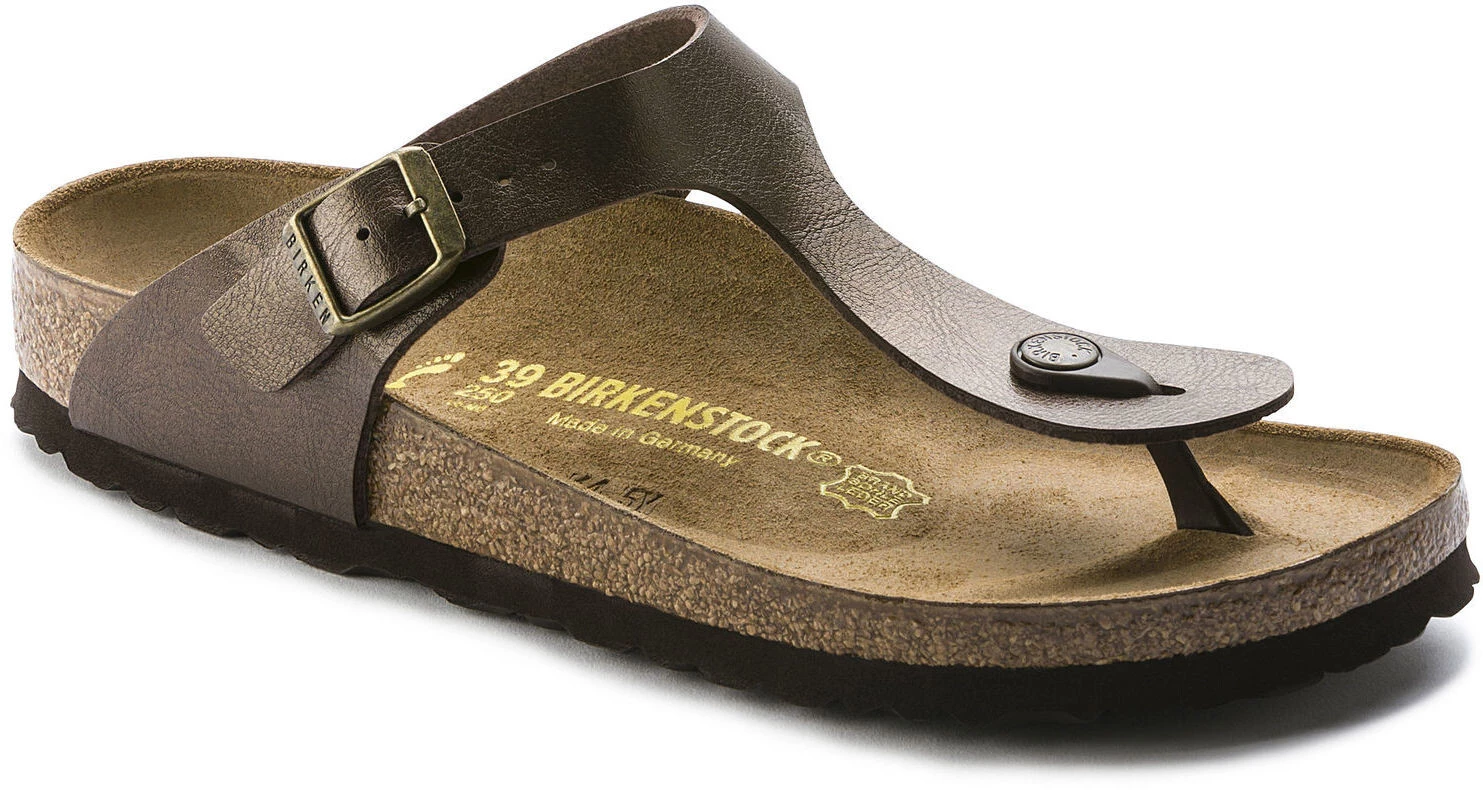 Le modèle BIRKENSTOCK Gizeh, un véritable classique, est devenu depuis longtemps un article de mode indispensable. La tige est constituée d’un matériau synthétique durable et agréable pour la peau, le Birko-Flor, avec un revêtement brillant.