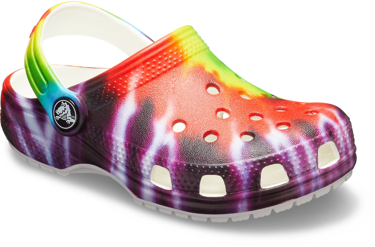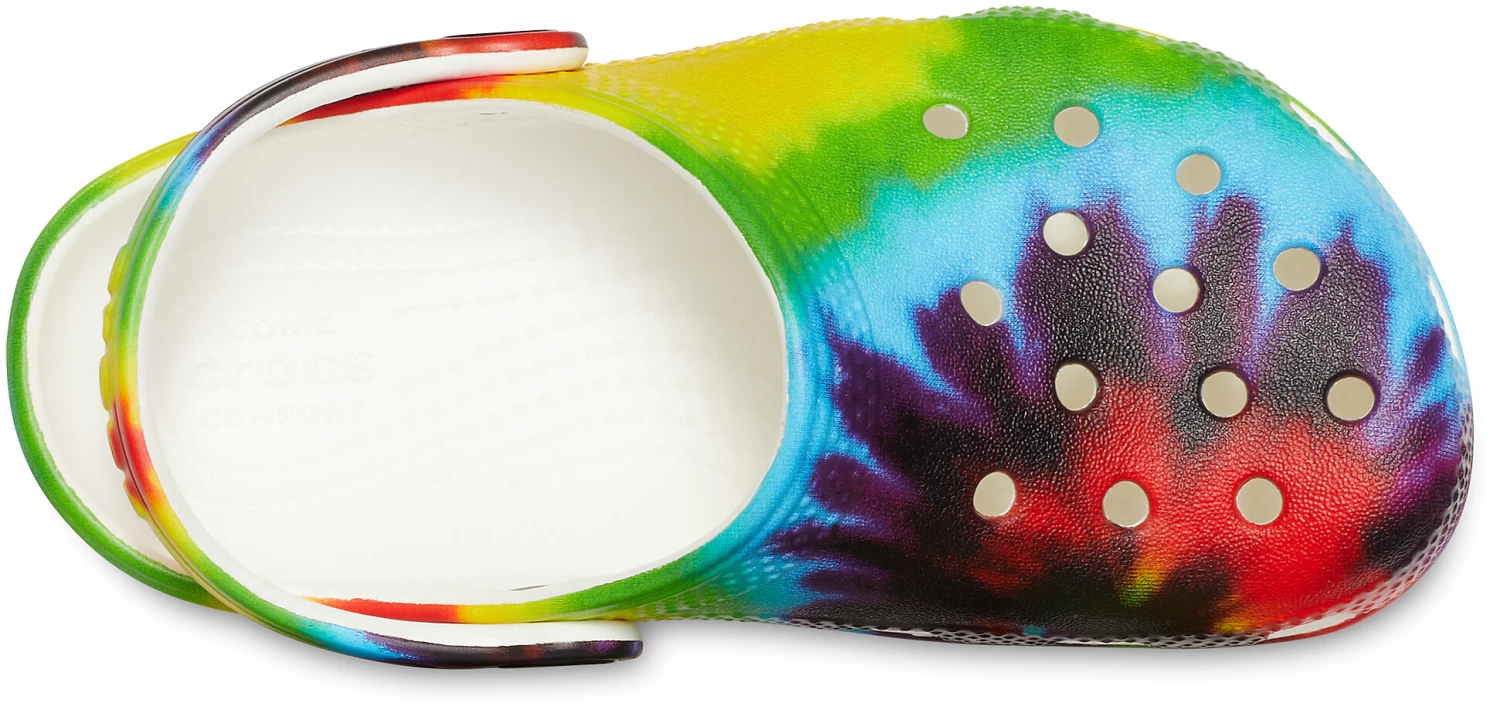 Timeless, fun and full of peaceful good vibes, the bright pops of tie-dye graphics on these clogs are the perfect way to help your little one make a groovy style statement. Grounded in comfort, spiked with personality. From the playground to family outings, they’re ready to rock wherever the kids choose to roll.